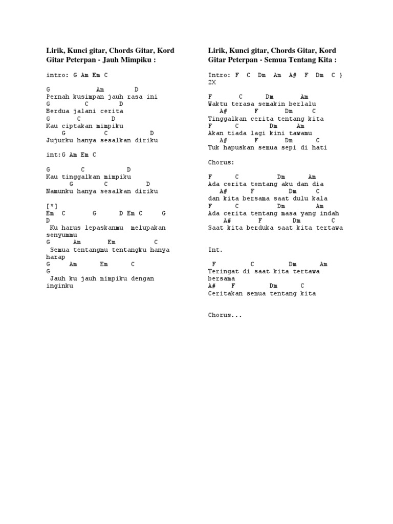 Chord Gitar Jauh Mimpiku - Chord kunci gitar lagu karo ula aku tadingken. Chord Gitar Jauh Mimpiku : Capo fret 2 intro :