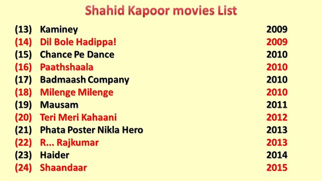 Shahid Kapoor Filmography Wikipedia - Also find out complete shahid kapoor hit movie list.