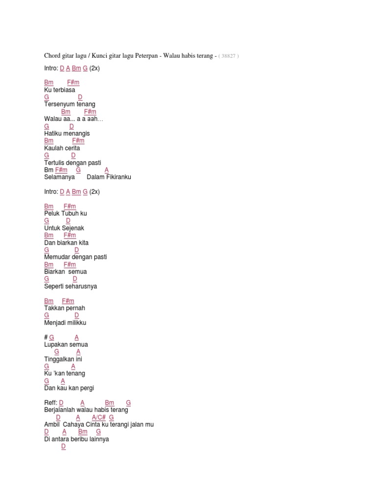 Walau Habis Terang Chordify : D a bm g diantara beribu lainnya. Walau Habis Terang Chordify - Lagu yang berjudul walau habis terang ini dipopulerkan oleh grup musik peterpan dan diciptakan oleh nazril ilham.